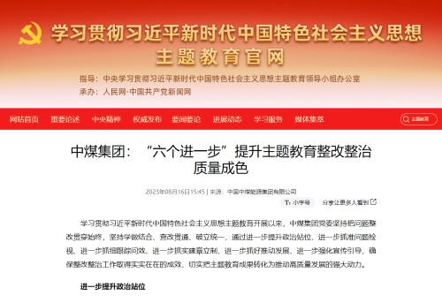 - 【中央主題教育官網(wǎng)】中煤集團(tuán):“六個進(jìn)一步”提升主題教育整改...