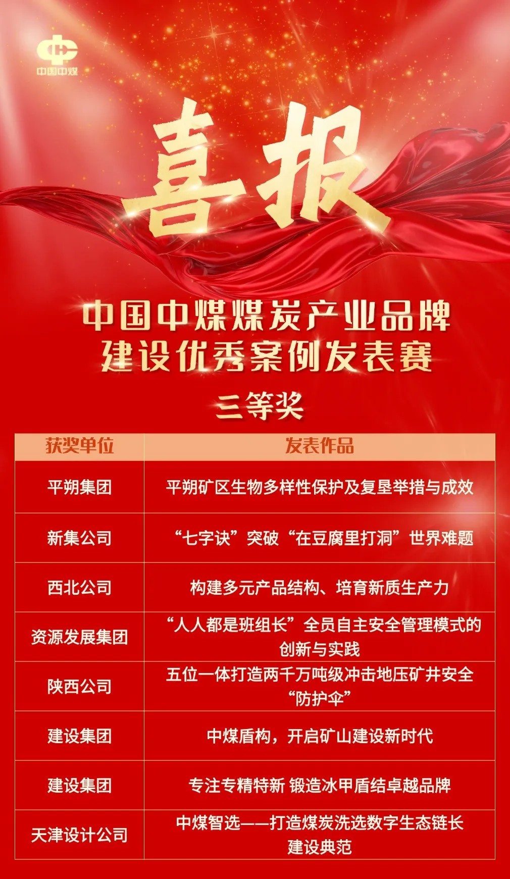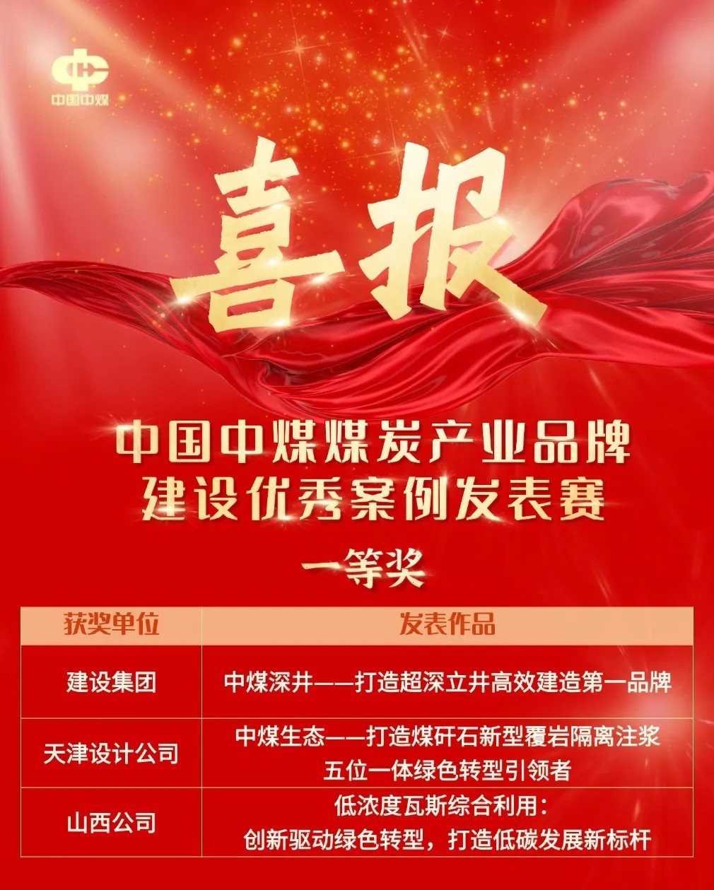 經過激烈角逐,建設集團《中煤深井——打造超深立井高效建造第一品牌》、天津設計公司《中煤生態——打造煤矸石新型覆巖隔離注漿五位一體綠色轉型引領者》、山西公司《低濃度瓦斯綜合利用:創新驅動綠色轉型,打造低碳發展新標桿》3個案例榮獲一等獎。大屯公司、建設集團、西安設計公司、北煤機公司的5個案例榮獲二等獎。平朔集團、新集公司、西北公司、資源發展集團、陜西公司、建設集團、天津設計公司的8個案例榮獲三等獎。