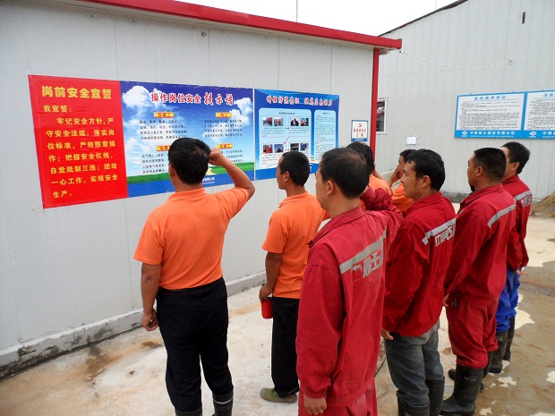 每天上崗前,各工種職工都會聚集在凍結車間門口,開展崗前安全宣誓活動。崗前宣誓作為項目部班組交接班工作的重要內容,是接班員工必須履行的工作程序。它不僅僅是一種形式,而且是對安全工作的一種提示,對安全責任的一種提示,通過這種必要的、有效的形式來推動和促進項目部安全生產。